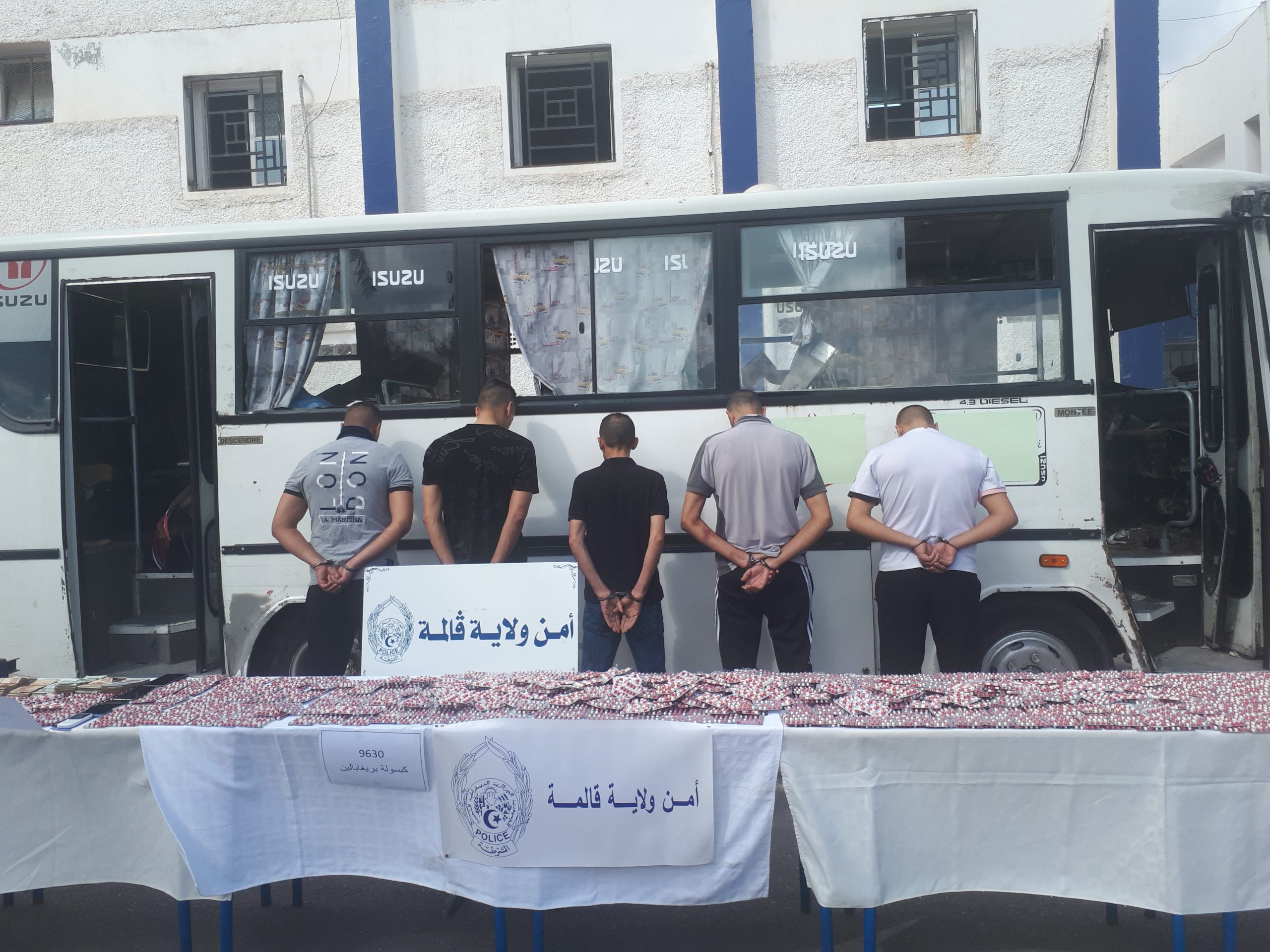 Poursuivant leur lutte implacable contre la criminalité sous toutes ses formes, en milieu urbain, les services de police redoublent d’efforts pour assainir les lieux de ce fléau considéré l’un des maux sociaux les plus graves.Ainsi, agissant sur informations parvenues à leurs postes d’opérations, les éléments de la BAD ( Brigade Anti-Drogue) structurés dans les rangs de la police judiciaire relevant de la sûreté de wilaya ont neutralisé, jeudi dernier 15 mai , cinq (5) individus et saisit un total de 12.150 capsules hallucinogènes, dans deux (2) opérations distinctes. La première intervention déclenchée suite à un renseignement faisant état de l’existence d’un repaire situé au niveau de la cité Didouche Mourad où serait stocké un grand nombre de produits neuroleptiques destinés à la commercialisation clandestine, a permis aux fins limiers de la police qui ont investi les lieux, après avoir pris les mesures réglementaires nécessaires d’arrêter un suspect âgé de 39 ans qui détenait pas moins de 2.520 capsules et une somme d’argent ; fruit de la vente illicite des produits prohibés. Dans le même contexte, les mêmes éléments sont parvenus à mettre fin, durant la même journée , aux agissements criminels d’une bande de 4 malfaiteurs âgés de 35 à 45 ans ; versés eux aussi dans le trafic de stupéfiants. Au moment de leur interpellation qui a eu lieu, à l’entrée de la localité de Bendjerah située à quelques encablures,à l’Ouest du chef-lieu, les suspects étaient à bord d’un bus de transport urbain dont la fouille a permis la découverte de pas moins de 9.630 capsules qui étaient dissimulées en grande partie sous le pare-choc de véhicule ains qu’une importante somme d’argent, provenant de la vente illicite des produits interdits de commercialisation en dehors de l’entité légitime.