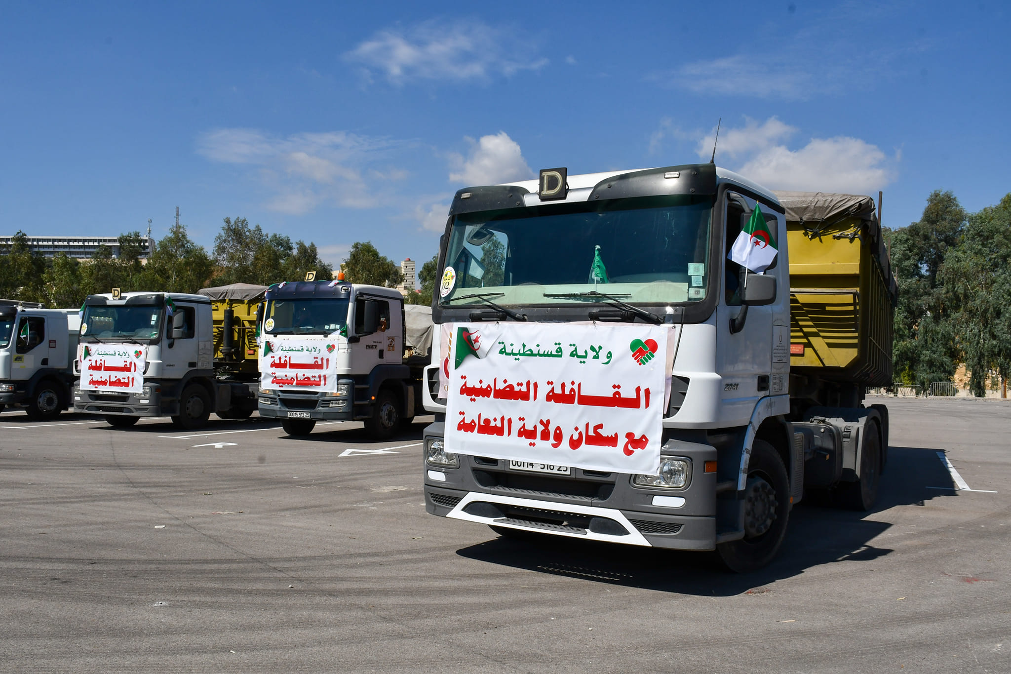 Dans le cadre de l’élan de solidarité entre Algériens, la wilaya de Constantine vient d’envoyer un deuxième convoi vers la wilaya de Naama affectée elle aussi par les inondations, après avoir envoyé le premier convoi vers la wilaya de Bechar, Un convoi de solidarité de plus de 260 tonnes de denrées alimentaires (semoule, sucre, café, huile, tomates, céréales sèches, couscous, poudre de lait et autres matériaux), de vêtements, de matelas, de couvertures, de produits pharmaceutiques et parapharmaceutiques, de matériel de nettoyage et de stérilisation mais aussi de 400 outils (pelles et haches) nécessaires pour le ramassage de la boue et des débris des inondations.
