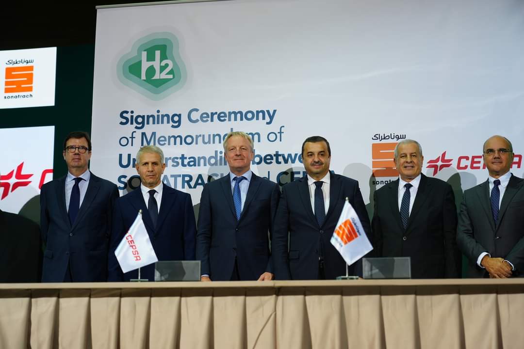 SONATRACH (Algérie) et CEPSA (Espagne) ont signé aujourd’hui un mémorandum d’entente pour la réalisation d’une étude de faisabilité concernant un projet intégré de production d’hydrogène vert et de ses dérivés en Algérie, avec pour objectif principal d’approvisionner le marché européen.La cérémonie de signature, qui a eu lieu au Centre des Conventions d’Oran (CCO), s’est déroulée en présence de Monsieur Mohamed Arkab, Ministre de l’Énergie et des Mines, ainsi que de plusieurs personnalités importantes. Parmi elles, le Consul Général d’Espagne en Algérie, le Président Directeur Général de SONATRACH, Monsieur Rachid Hachichi, le PDG de SONELGAZ, Monsieur Mourad Adjal, et le PDG de CEPSA, Monsieur Maarten Wetselaar.