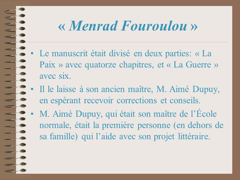 Ce long métrage retrace le parcours de Fouroulou Menrad, le personnage principal du premier roman de Mouloud Feraoun (1913-1962), Le Fils du pauvre, publié en 1950. L’ouvrage, où l’auteur a introduit des éléments autobiographiques de son enfance au village Tizi Hibel, retrace la vie de Fouroulou, l’enfant berger né dans une famille pauvre, dans un petit village de Kabylie, et qui deviendra instituteur.