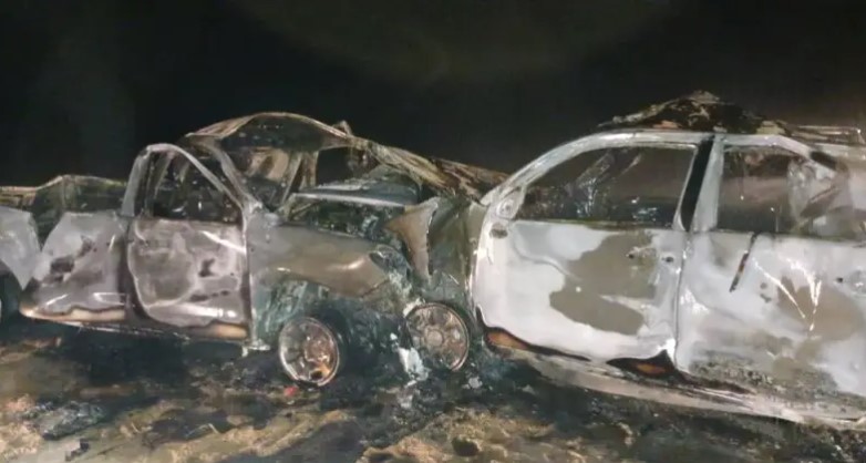 entre deux véhicules utilitaires, qui ont ensuite pris feu à la suite de l’impact.